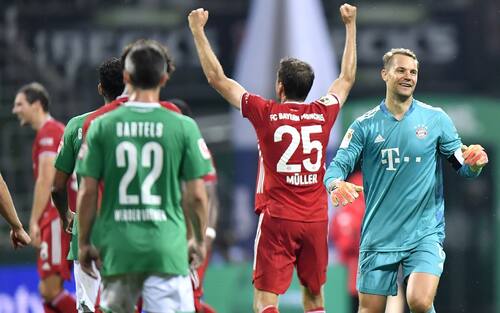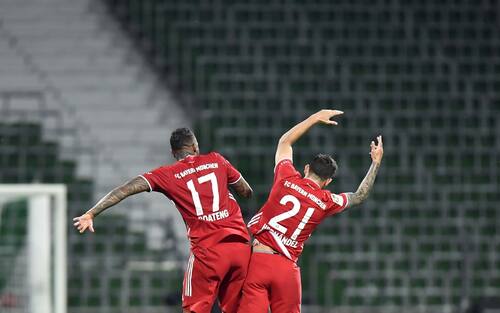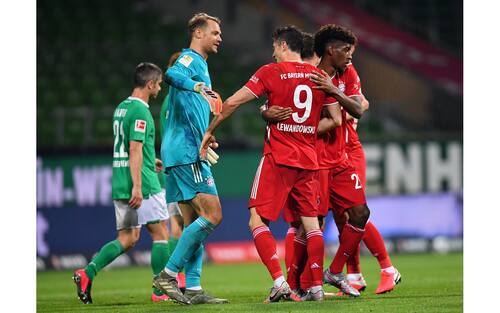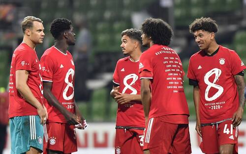 Grazie alla vittoria per 1-0 in casa del Werder Brema i bavaresi possono festeggiare la matematica conquista della loro 30^ Bundesliga. Decisivo ancora una volta Lewandowski, al suo 31° gol in Bundes, il 46° stagionale. Festa contenuta per i ragazzi di Flick, che hanno indossato una maglia rossa con il numero 8, come i titoli consecutivi vinti dai tedeschi. "Mancava l'atmosfera, speriamo di festeggiare presto nel nostro stadio", l'auspicio di Lewandowski