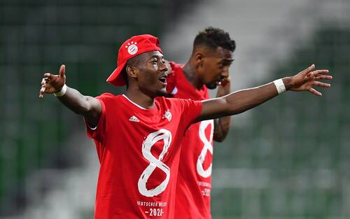 La gioia di David Alaba in una serata abbastanza surreale, come ha spiegato anche il tecnico Flick: "Mancava l'atmosfera, speriamo di festeggiare presto nel nostro stadio".