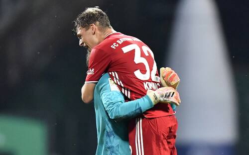 L'abbraccio tra Manuel Neuer e Joshua Kimmich al termine della partita.