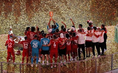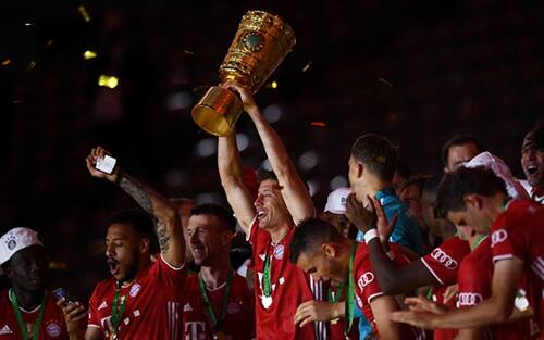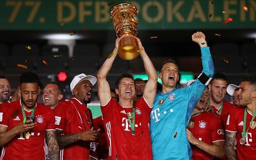 Dopo la vittoria della Bundesliga, l'8^ consecutiva, all'Olympiadion di Berlino la squadra di Flick batte 4-2 il Bayer Leverkusen grazie alle reti di Alaba, Gnabry e alla doppietta del solito Lewandowski e torna a far festa, sollevando la 20^ Coppa di Germania (la DFB Pokal) della sua storia. E ora sogna il Triplete