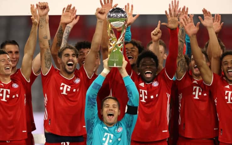 Dopo il triplete della scorsa stagione e la conquista della Supercoppa Europea contro il Siviglia, il club bavarese mette un altro trofeo in bacheca: sconfitto 3-2 il Borussia Dortmund. Decisiva la rete al minuto 82 di Kimmich, dopo che gli uomini di Favre erano riusciti a rimontare due reti