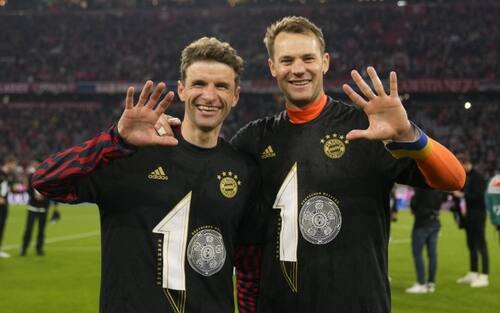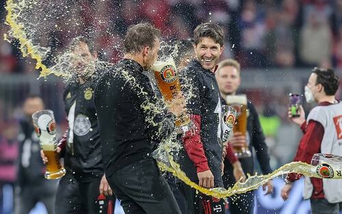 Come da tradizione, i giocatori bavaresi hanno festeggiato il trionfo casalingo con boccali di birra a volontà. Una prima volta per l'allenatore Julian Nagelsmann, una consuetudine ormai per Muller e Neuer, presenti in tutti i campionati vinti nell'ultimo decennio
