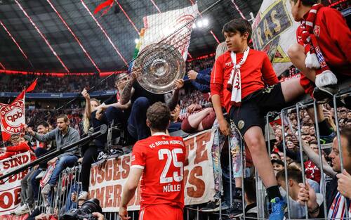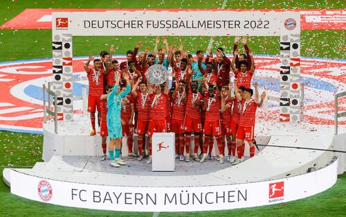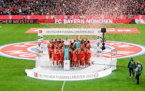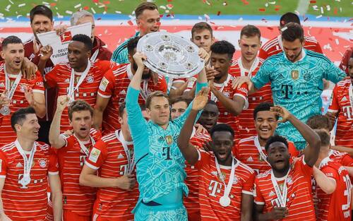 Il Bayern Monaco, Campione di Germania per la 32ma volta, è stato premiato ufficialmente al termine della partita pareggiata 2-2 contro lo Stoccarda. Dopo il triplice fischio dell'arbitro ha preso vita la festa dei bavaresi, con il capitano Manuel Neuer che ha sollevato il Meisterschale già conquistato 3 giornate fa. Per i ragazzi di Nagelsmann si tratta del decimo campionato consecutivo