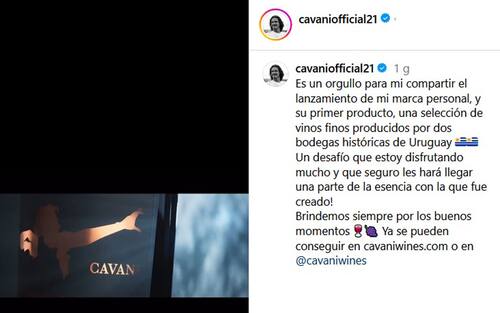 - L'annuncio su Instagram: "Sono orgoglioso di condividere il lancio del mio marchio personale e del suo primo prodotto, una selezione di vini pregiati prodotti da due cantine storiche dell'Uruguay. Una sfida che mi sta piacendo molto e che sono sicuro vi porterà una parte dell'essenza con cui è stata creata. Brindiamo sempre ai bei momenti", scrive il Matador