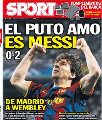 Molto più forte e diretto l'altro giornale vicino al Barcellona che riprende le parole della conferenza stampa della vigilia di Guardiola: "Il maledetto amo è Messi. Da Madrid a Wembley"