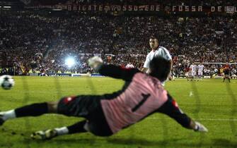 28 maggio 2003, MILAN-JUVENTUS 0-0 - Uno sguardo alla palla, uno all'arbitro, poi parte: Sheva spiazza Buffon, il Milan vince la Champions ai rigori. E' comunque una grande serata per tutto il calcio italiano -