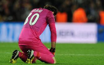 Testa bassa per Salvatore Sirigu al fischio finale: l'1-1 finale qualifica il Barcellona alle semifinali di Champions League. Termina qui l'avventura europea per il Paris Saint Germain di Carlo Ancelotti -