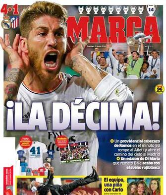 La Decima è il titolo a tutta pagina di Marca, il quotidiano sportivo spagnolo più vicino alla casa blanca -