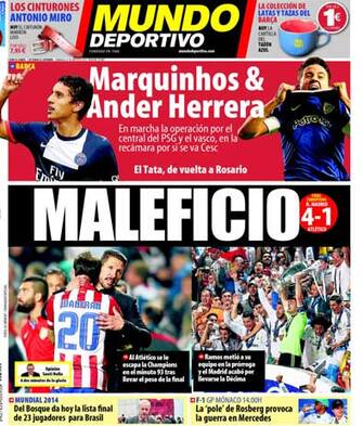 Meno trionafalista l'altro quotidiano sportivo catalano che parla di "Maleficio", chiaro il riferimento al sogno sfumato dei colchoneros -