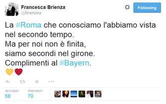 Anche Francesca Brienza, giornalista di Roma Tv e compagna di Garcia, ha twittato un messaggio di incoraggiamento per i giallorossi -