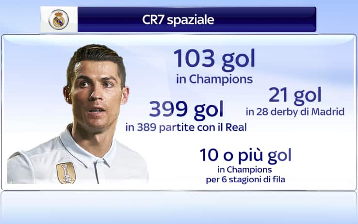 Con le due reti di ieri, inolte, Ronaldo ha aumetato il suo divario nei confronti di Messi come miglior marcatore di sempre nella storia della Champions League. 103 i gol del portoghese, 94 quelli dell'argentino che però conserva ancora una miglior media gol (0,82 contro 0,73). Inoltre, da ieri, Ronaldo è diventato il miglior marcatore nelle semifinali di Champions superando un monumeto come Di Stefano (13 gol contro 11) ed è l'unico calciatore della storia ad aver segnato almeno 10 gol in un'edizione di Champions League per 6 stagioni consecutive. Impressionante.