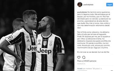Tre lingue per ribadire un concetto: "Non molliamo, anzi. Ricominciamo da qui". Due giorni dopo la sconfitta col Real, Paulo Dybala e Stephan Lichtsteiner hanno pubblicato un bel messaggio sui propri profili ufficiali. La delusione è tanta, il rammarico ancor di più. E quel 4-1 col Real fa ancora male, soprattutto per l'ennesima finale di Champions persa negli ultimi anni (la seconda in tre stagioni). "Restiamo uniti, c'è tanta frustrazione ma prima o poi vinceremo questo titolo. Inglese, italiano, spagnolo. Questi i pensieri di Dybala e Lichtsteiner.