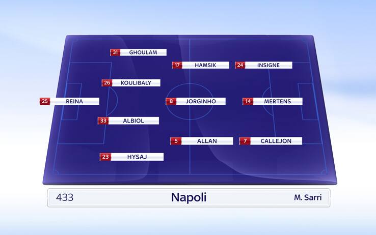 Napoli (4-3-3): Reina, Hysaj, Albiol, Koulbaly, Ghoulam; Allan, Jorginho, Hamsik; Callejon, Mertens, Insigne.