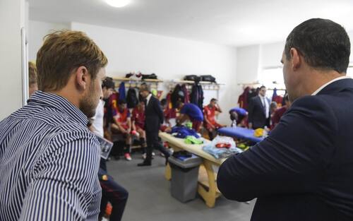 L'ex capitano e neo dirigente della Roma ha assistito al match valido per la prima giornata di Youth League tra la formazione Primavera dei giallorossi e l'Atletico Madrid Under 19, vinto 2-1 dagli spagnoli. Prima della partita per Totti anche una visita negli spogliatoi