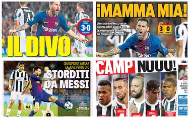 Tre schiaffi del Barcellona riportano la Juventus sulla terra: il verdetto della prima giornata di Champions League è quantomai duro per i bianconeri. 45’ di equilibrio, poi il blackout che ha lasciato strada libera ai blaugrana di Valverde. “Storditi da Messi” titola in apertura la Gazzetta dello Sport: “Leo marziano: con due perle, un palo e grandi numeri trascina il Barça al Camp Nou. E sprona Higuain”. Sulla stella linea anche il Corriere dello Sport: “Messi sotto: amaro ritorno della Juve in Champions, travolta dalle magie di Messi”. Tuttosport, quotidiano torinese, calca ancora di più la mano: “Camp noooo!” si legge in prima pagina: “Rivincita Champions del Barcellona: la Juve crolla 3-0 al termine di un buon primo tempo. Troppi i giocatori insufficienti, un altro tonfo stile Cardiff.