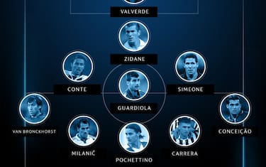 Centrocampo folto, con ben cinque uomini a proteggere la difesa. Sulla destra c'è Sergio Conceição, vecchia conoscenza del calcio italiano. In Serie A ha vestito le maglie di Lazio, Parma e Inter, oggi allena il Porto dove ha anche giocato nel corso della sua carriera da calciatore. A sinistra c'è invece Giovanni van Bronckhorst, che ha avuto una grande carriera terminata con la sconfitta in finale dei Mondiali del 2010 contro la Spagna. Ha giocato con il Barcellona e con l'Arsenal tra le altre, ed oggi è alla guida del Feyenoord. Personalità, corsa e qualità in mezzo al campo. Con Pep Guardiola a fare gioco: tanti anni al Barcellona, un'esperienza anche in Italia con le maglie di Brescia e Roma. Tanta tecnica e visione di gioco, ora sta mettendo a disposizione del Manchester City la sua intelligenza calcistica. Il carattere che ha in panchina lo aveva anche da calciatore Antonio Conte, che con la Juventus ha vinto campionati, Champions League e Coppa Uefa. Simbolo dei bianconeri e della Nazionale italiana per anni, ora si gioca la Champions League con il Chelsea. A completare il centrocampo c'è un'altra vecchia conoscenza del calcio italiano, Diego Simeone. Il 'Cholo' ha giocato con Inter e Lazio, oltre che con Atletico e Siviglia. Ha vinto la Coppa Uefa in nerazzurro e una Supercoppa Europa in biancoceleste, da anni è uno dei segreti dell'Atletico Madrid.