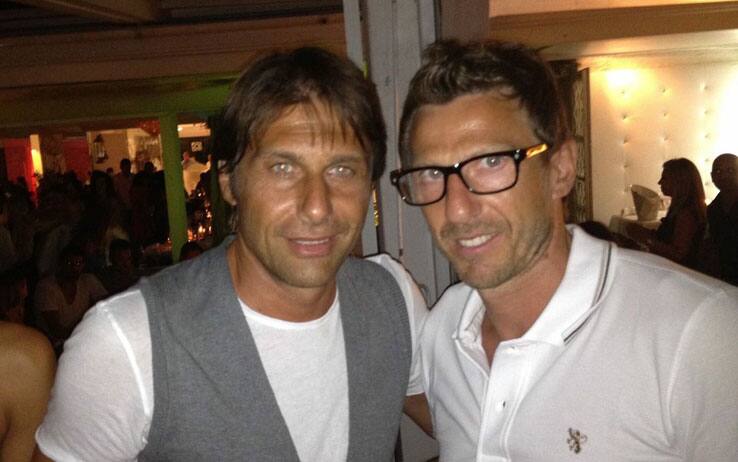 È tempo di crescere, di misurarsi con la panchina. I due vecchi amici si rivedranno, da allenatori, solo 7 anni più tardi. La prima giornata del campionato di Serie B 2010-2011 mette di fronte il Pescara di Di Francesco e il Siena di Conte: fanno 1-1, al ritorno vincerà Conte (2-1) che sarà promosso in A (Di Francesco chiude 13°). L’anno dopo allenano entrambi in A, Conte alla Juve, Di Francesco nella Lecce “di Conte”, ma non fanno in tempo a incrociarsi. DiFra salta a inizio dicembre, Lecce-Juve si gioca l’8 gennaio. Si ritrovano però in estate, entrambi in vacanza a San Benedetto del Tronto, al locale dei Bagni Andrea (foto da lanuovariviera.it) e ognuno con un valido motivo per festeggiare: Di Francesco ha appena firmato con il Sassuolo (in B), Conte si è messo in tasca il suo primo scudetto da allenatore.