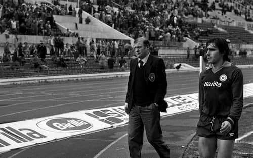 Bruno Conti (qui insieme a Bersellini nel 1981) con la Roma disputò quasi tutta la sua carriera, tranne due campionati con il Genoa in Serie B tra il 1973 e il 1991. Classe 1955 nella partita contro il Liverpool, il “Sindaco de Roma” sbagliò il secondo tiro dal dischetto -