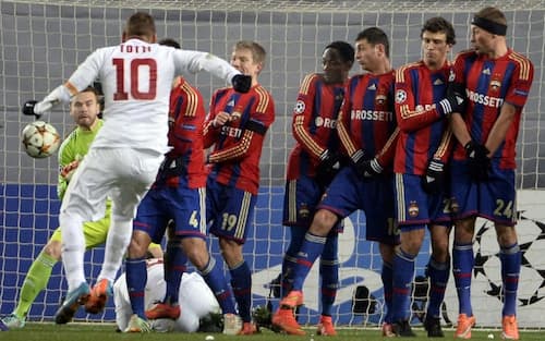 E' il 25 novembre 2014: nel gelo di Mosca Totti segna su punizione alla fine del primo tempo. Per la cronaca la partita finirà 1-1