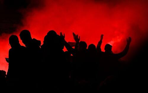 Erano in centinaia, che si sono ritrovati nel tardo pomeriggio per poi dirigersi verso lo stadio. Alcuni vestiti con tute antivirus, altri con le mascherine.