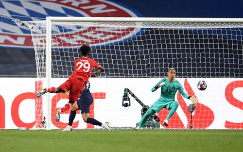 Bavaresi in vantaggio prima dell'ora di gioco: lunga azione che alla fine porta Kimmich al cross morbido dalla destra per il colpo di testa di Coman sul palo lontano.