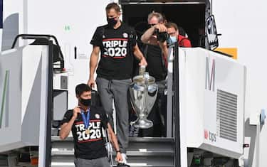 Il Bayern è atterrato a Monaco di Baviera nel pomeriggio, portando con sé la Champions vinta in finale contro il Paris Saint-Germain. A scendere la scaletta con la coppa in mano è stato il capitano Neuer, con la squadra che indossava una t-shirt celebrativa del triplete