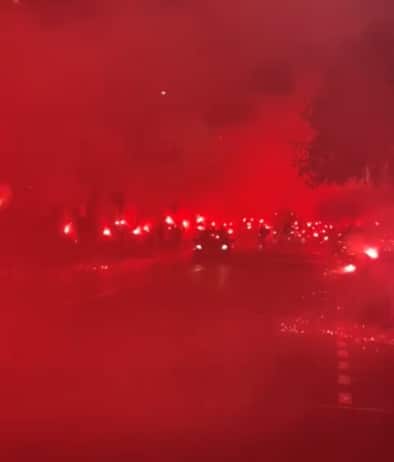 Atalanta-Ajax, fiaccolata dei tifosi nerazzurri per accompagnare il pullman. VIDEO