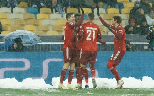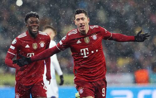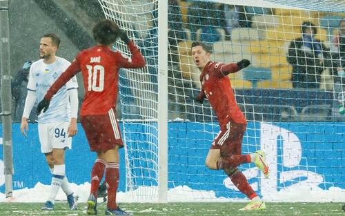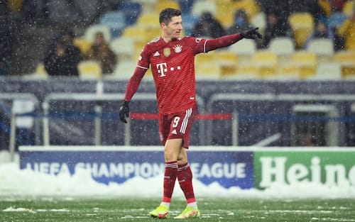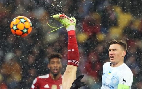 Ennesima prodezza del bomber polacco nella vittoria per 2-1 del Bayern Monaco in Champions a Kiev, sotto una fitta nevicata. Al 14' del primo tempo, l'attaccante dei bavaresi - incurante dello scarpino slacciato - ha girato a rete con il destro in rovesciata una corta respinta di Zabarnyi fulminando il portiere Bushchan, e mettendo così a segno il suo 82° gol nella competizione