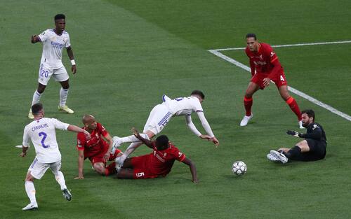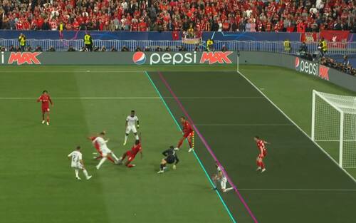 Alla fine viene confermato il fuorigioco, Fabinho è l'ultimo a colpire ma su iniziale tocco di Valverde. Il Var non considera una giocata quella del centrocampista dei reds e Benzema viene giudicato in offside.