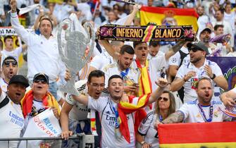 IL PRE PARTITA - Ecco i primi scatti del pomeriggio a Pairigi. C'è già una coppa, la alzano al cielo i tifosi del Real. Succederà anche a fine serata.