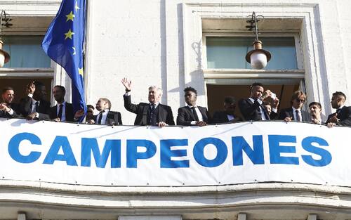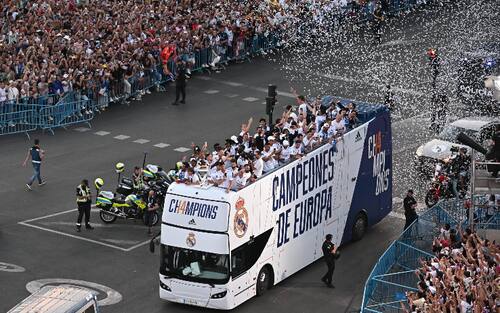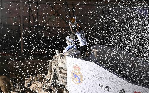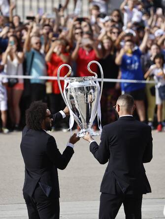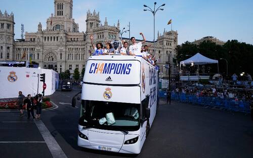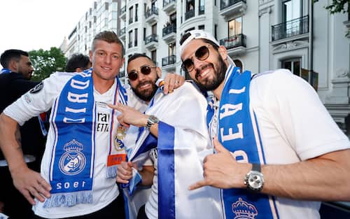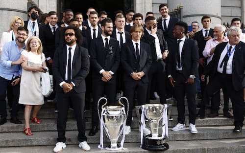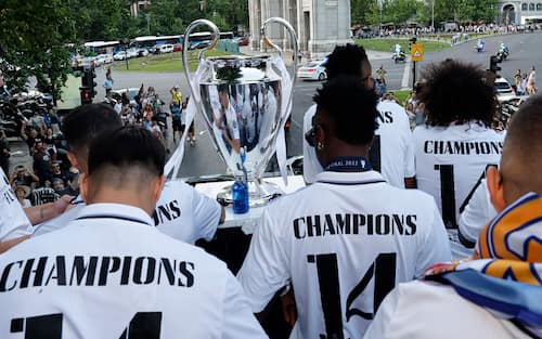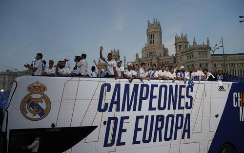 Dopo il trionfo nella notte di Parigi contro il Liverpool, il Real Madrid festeggia l'ennesima Champions in casa, davanti ai propri tifosi. Il corteo della squadra, partito dalla Cattedrale de la Aldumena verso le 18:15, è poi arrivato in tarda serata allo stadio Santiago Bernabeu, non mancando ovviamente di passare a Plaza de Cibeles, il luogo delle celebrazioni di tutti i trionfi delle merengues