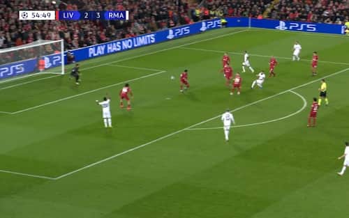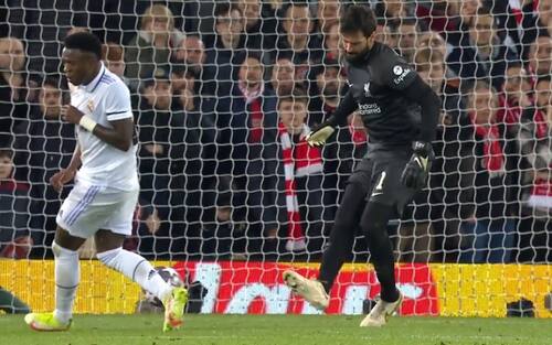 - Alisson riceve il pallone e rinvia, ma senza accorgersi dell'arrivo di Vinicius