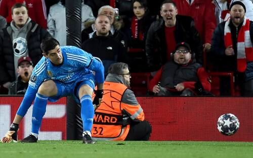 - Dalla papera di Courtois a quella di Alisson. Accade tutto al 36° minuto quando Joe Gomez serve all'indietro il proprio portiere