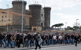 - Fra le immagini viste sui social anche quella di un gruppo di persone, tutte col volto coperto, che scendono dai Quartieri Spagnoli in direzione dei tifosi tedeschi