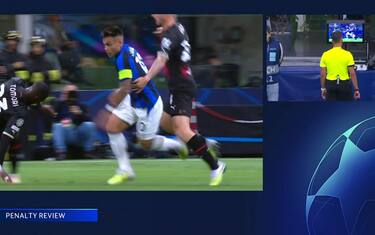 È la mezz'ora di gioco - con l'Inter già avanti 2-0 - quando l'arbitro Gil Manzano assegna un rigore ai nerazzurri per un contatto in area tra Lautaro e Kjaer. Calhanoglu è sul pallone, ma lo spagnolo viene richiamato al Var. Dopo una breve revisione, cancella penalty (e giallo a Kjaer)