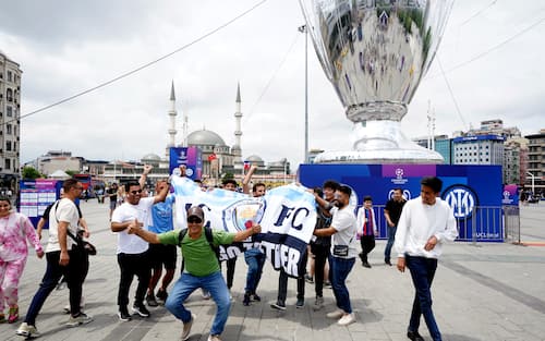- Sono tanti i tifosi di Inter e Manchester City presenti sin dalle prime ore del mattino lungo le strade di Istanbul. Situazione tranquilla al momento. Cresce l'attesa verso la finale di Champions League in programma alle 21 italiane all'Atatutk Stadium. Ma attenzione al traffico! Lo stadio non potrà essere raggiunto in auto, non sono stati previsti parcheggi. Ci si dovrà muovere con i mezzi pubblici e quindi muoversi con il giusto anticipo...