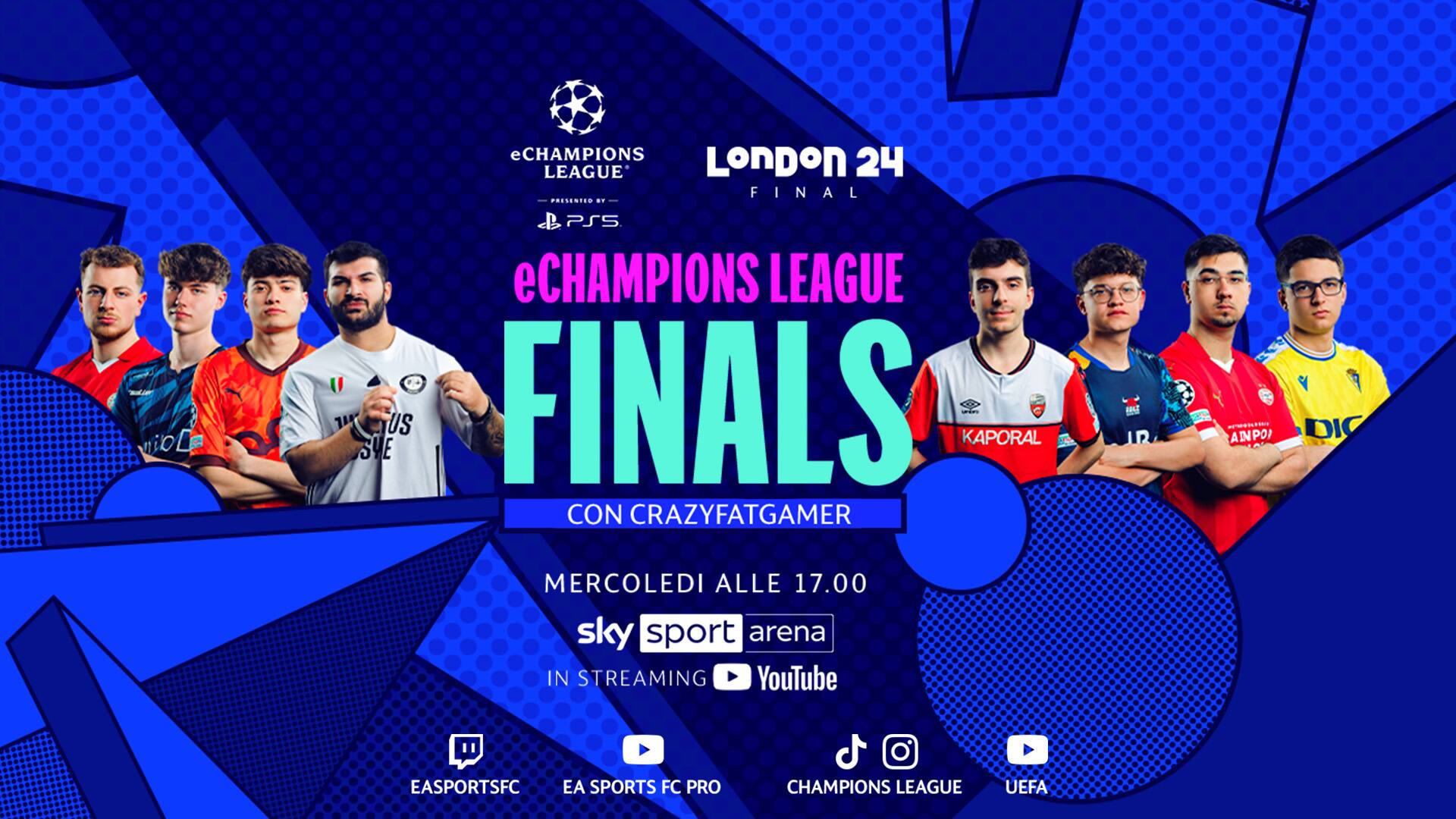 - dalle 17.00: su Sky Sport Arena seguiremo la lunga diretta dell’evento del Magazine di Londra, con la possibilità di interagire da casa. Infatti, la eChampions League sarà in streaming anche sul canale YouTube di Sky Sport, dove potrete commentare live con noi tutte le partite. In cuffia, con Luca Mastrorilli ci sarà un talent d’eccezione: Diego “Crazyfatgamer” Campagnani, una vera e propria colonna dell’esport italiano (tre volte campione italiano ed ex numero uno al mondo su FIFA), per commentare tutte le emozioni della eChampions League.