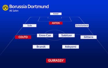 - La formazione tipo, 3-4-2-1: Kobel; Sule, ANTON, Schlotterbeck; COUTO, Emre Can, Sabitzer, Gittens; Brandt, Adeyemi; GUIRASSY. All. Sahin