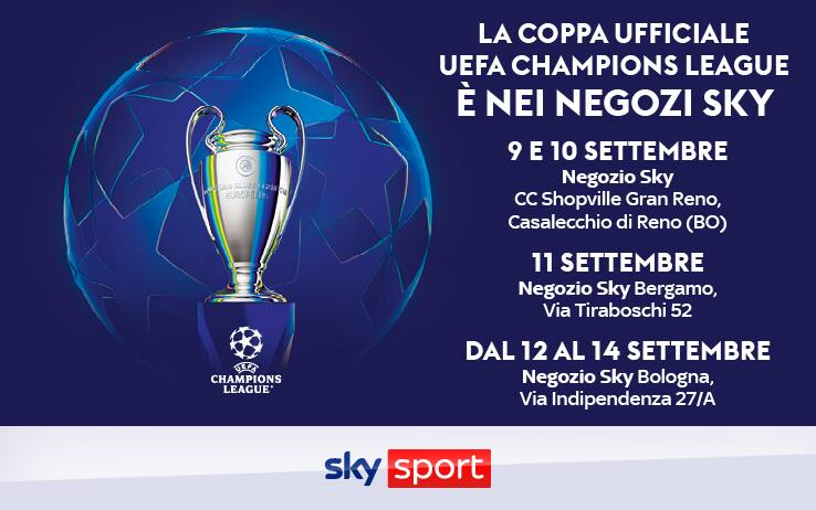 l'iniziativaScopri la magia della Champions League nei negozi Sky di Bologna e Bergamo e lasciati conquistare dal fascino della coppa ufficiale dell'Europa League a Roma. Non perdere l’occasione di vedere da vicino le coppe ufficiali più prestigiose del calcio europeo nella tua città