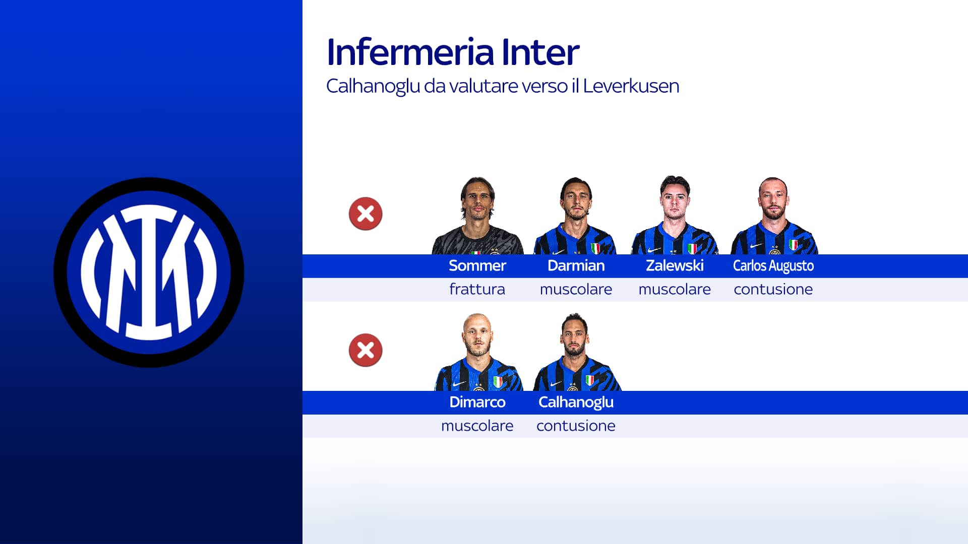 Il pareggio di Napoli lascia l'Inter al primo posto ma Simone Inzaghi ha più di una preoccupazione per le prossime partite. In particolare per l'infermeria, con quattro esterni su 5 fermi ai box. Zalewski e Darmian dovrebbero rientrare in gruppo dopo la sosta, mentre Carlos Augusto salterà la trasferta di Rotterdam, dove mercoledì i nerazzurri affronteranno il Feyenoord nell'andata degli ottavi di Champions. La speranza dei nerazzurri è di avere nuovamente a disposizione il brasiliano per il ritorno contro gli olandesi. A questi infortuni si aggiunge quello di Dimarco, che si è fermato al 51' della sfida contro il Napoli. Per l'esterno sinistro un problema alla coscia, che verrà approfondito con gli esami clinici previsti per lunedì 3 marzo. Inzaghi spera ma rischia di dover fare a meno anche del terzino azzurro per la sfida di Champions. Il sospiro di sollievo arriva da Calhanoglu: per il turco si tratta solo di una botta, oggi si è allenato a parte ma già nella giornata di lunedì dovrebbe tornare a lavorare con il resto del gruppo. Intanto, oggi è stato il primo giorno in cui Yann Sommer ha utilizzato il tutore dopo la frattura al pollice della mano destra. Il portiere svizzero ci lavorerà tutta la settimana: se andrà bene, Sommer potrebbe tornare per il ritorno dei quarti di Champions con il Feyenoord.