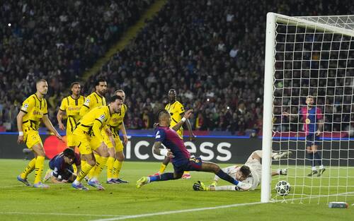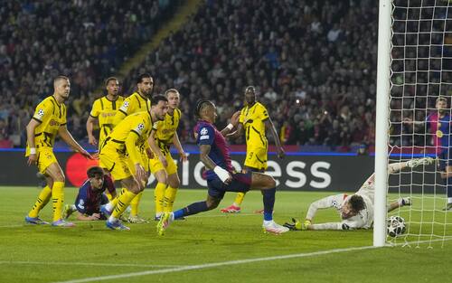 - Minuto 25 di Barcellona-Borussia Dortmund, altro quarto di finale (ma d'andata) a distanza di 22 anni. Dagli sviluppi di palla inattiva e torre sul secondo palo, Cubarsí trova la girata coi tempi giusti. Il pallone supera Kobel ed è destinato a entrare in rete, ma...