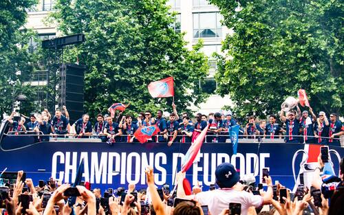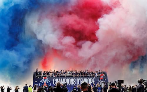 - I tifosi del Paris Saint-Germain sono accorsi sugli Champs-Élysées per festeggiare con i giocatori e i membri della squadra la vittoria della Champions League.