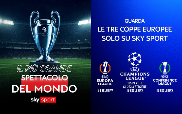 Un’occasione per scattare una foto, un sorriso, un ricordo da portare con sé. Con Sky Sport le notti magiche non finiscono mai: la Champions League con 185 partite su 203 a stagione in esclusiva e tutta l'Europa League e la Conference League in esclusiva, grazie anche a Diretta Gol. Vieni a vivere da vicino la magia della Champions League. Tutti i dettagli su https://trova.sky.it/c/coppe-uefa