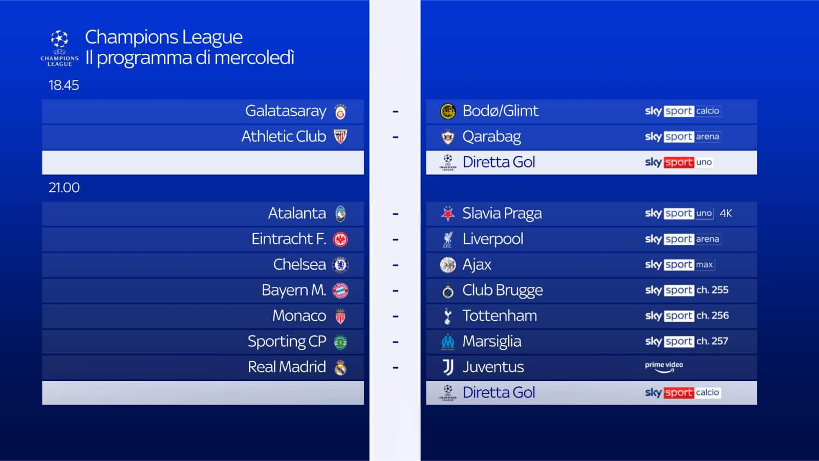 - dalle 18.00: Champions League Show con Sara Benci e Paolo Condò