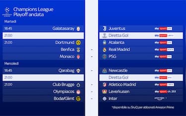 Si torna in campo in Europa con la Champions League, tutta da vivere su Sky e in streaming su NOW con 185 partite su 203 in esclusiva fino alla finale di Budapest del 30 maggio 2026. Mercoledì 21 gennaio, la settima giornata della massima competizione europea per club - penultima della League Phase - sarà live su Sky Sport con le partite da seguire anche in contemporanea grazie a Diretta Gol. Mercoledì, alle 21.00, a Bergamo Atalanta-Athletic Bilbao, su Sky Sport Uno, Sky Sport 252 e Sky Sport 4K. Telecronaca di Stefano Borghi con il commento di Riccardo Montolivo, inviati Massimiliano Nebuloni e Marina Presello. Sempre alle 21.00 anche Juventus-Benfica: i clienti Sky abbonati al servizio Amazon Prime potranno vedere il match in modo semplice e diretto attraverso l'app Prime Video disponibile su Sky Q, Sky Stream e Sky Glass.