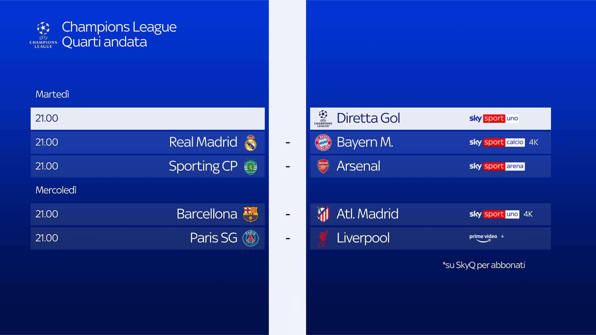 guida tvOggi, martedì 7 aprile, si scende in campo per i quarti d'andata di Champions League. Alle Sporting Lisbona-Arsenal: dove seguire la partita su Sky e in streaming su NOW, le statistiche delle due squadre