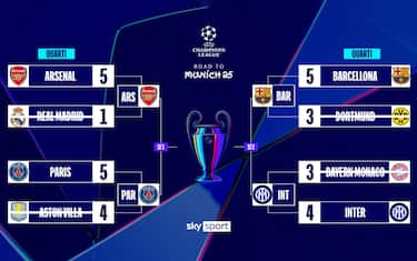 Turno superato dall'Inter, che aveva vinto l'andata a Monaco di Baviera (gol-partita di Frattesi al 96') prima del 2-2 a San Siro. Nerazzurri che in semifinale incrociano il Barcellona, devastante al Montjuic (4-0) prima di uscire indenne da Dortmund nonostante la sconfitta. Dall'altra parte del tabellone colpo dell'Arsenal, che elimina il Real Madrid vincendo sia all'andata che al ritorno. Sulla strada dei Gunners c'è il Psg, che rischia al ritorno contro l'Aston Villa dopo il successo nel primo round. Ecco i risultati dei quarti.