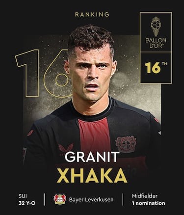 Candidatura che è il giusto riconoscimento alla mente del Leverkusen, protagonista di una stagione indimenticabile da assoluto dominatore in Germania e con l’Europa League sfiorata. Un suo gol decide la finale di Coppa di Germania, altro titolo messo in bacheca. Da capitano della Svizzera ha sorpreso in estate all’Europeo: eliminato solo ai rigori dall’Inghilterra, dopo aver estromesso l’Italia agli ottavi