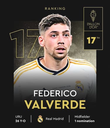 Sei i giocatori del Real Madrid tra i 30 finalisti: nella squadra di Ancelotti è indiscutibile il peso e l’importanza che riveste uno come Valverde. Champions, campionato e Supercoppa i tre titoli portati a casa, poi con la nazionale uruguaiana ha aggiunto un terzo posto conquistato in Copa America
