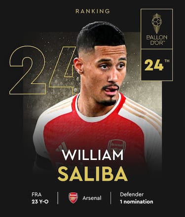 È uno dei quattro che l’Arsenal riesce a piazzare nella lista dei 30 candidati, a conferma dell’ottima stagione dei Gunners. Aperta con la vittoria del Community Shield, chiusa con un secondo posto alle spalle del Manchester City e tanti complimenti ad Arteta per l’organizzazione regalata ai Gunners. Anche grazie alla costanza di rendimento e all’affidabilità di gente come Saliba. L’Europeo da titolare indiscusso con la Francia sembrava potesse regalargli altre soddisfazioni, ma in semifinale si è dovuto arrendere alla Spagna